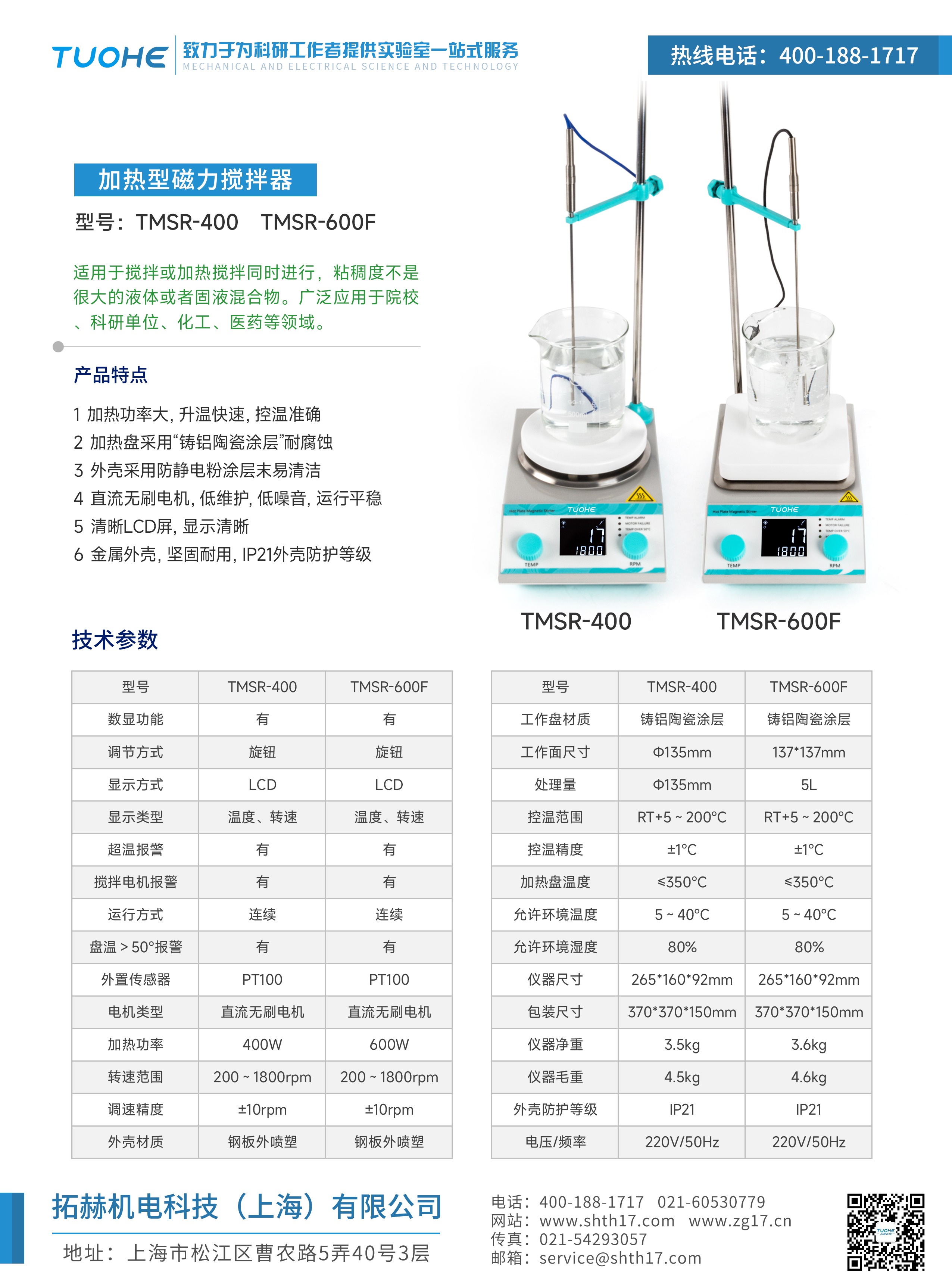 加热磁力搅拌器TMSR系列主要是针对样品有加热需求而研发设计的分为135圆盘和140方盘两种机型可供选择,适用于搅拌或加热搅拌同时进行,粘稠度不是很大的液体或者固液混合物。